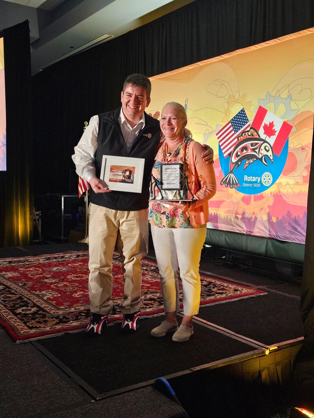 The club received the Beacon of Warmth Award. Presented by Caleb Summerfelt to Club President Kelly Deakin at the District 5020 Conference in Blaine Washington.